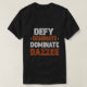 Hier ist eine Beschreibung des T - Shirt-Designs: **T - Shirt Design: Defy, Dominate, Dazzle** Dieses fett und auffällig gestaltete Design enthält die Worte "Defy", "Dominate" und "Dazzle" in einem beeindruckenden, stilisierten Schriftart. Die Verwendung von Schwarz und Weiß schafft einen starken visuellen Einfluss, wobei die Wörter Aufmerksamkeit erregen. Dieses Design ist perfekt für diejenigen, die eine selbstbewusste und selbstbewusste Einstellung, und wollte, eine Aussage zu machen.