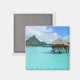 Souvenirmagnet eines luxuriösen Bungalow Resorts in der klaren, blauen Lagune der pazifischen Insel Bora Bora, in der Nähe von Tahiti in Französisch-Polynesien.