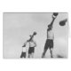 Gruppe junger Männer, die im Freien mit Gewichten trainieren (B&W) | FPG | AssetID: AB06446
