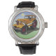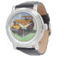 Uhr, Vintage Männeruhr mit schwarzem Lederarmband
