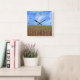 Diese Wanduhr zeigt ein atemberaubendes Bild von Strandrasen, Zaun und blauem Himmel.