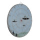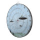 Eine Aquarellfarbe von drei Ufos mit Untertasse über den Bergen schmückt dieses lustige Dartboard!