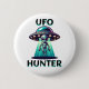 Alien und UFO-Grafik für diese in die UFOlogy. Eine niedliche Alien, die von einem UFO abgebrannt wird. Im Text steht "UFO Hunter" in schwarz und türkis.