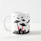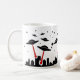 Diese Tasse kennzeichnet einen wiederholten Entwurf von UFOs, wenn die roten Laser, eine Stadt eindringen. Die Hintergrundfarbe kann besonders angefertigt werden, wenn sie gewünscht wird.
