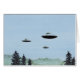Aquarell, Stift und Tinte, Farbstift gezeichnet von drei sauceren UFOs über den Bergen.