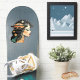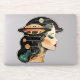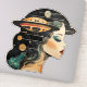 Ein Aufkleber mit einer Frau mit geschlossenen Augen. Das Universum und ein UFO / UAP ist in ihrem Haar.