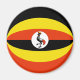 Die Flagge Ugandas wurde sorgfältig auf die kreisförmige Form dieses Magneten angepasst. Ein dekorativer Weg, um die ugandische Kultur zu fördern.