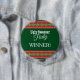 Dieser Ugly Sweater Weihnachtsweihnachtsknopf WINNER weist einen dunkelgrünen Hintergrund auf, der mit einem skandinavischen Strick-Design wie ein hässlicher Weihnachtspulli aussieht. Der weiße Text lautet: Ugly Sweater Party WINNER!