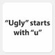 "Ugly" beginnt mit "U" Quadratischer Aufkleber