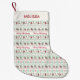 Personalisierter Weihnachtsweihnachtsstil mit sich wiederholenden Mustern im Hintergrund, in einem hässlichen Weihnachtspulli-Stil. Das Muster besteht aus Socken, Weihnachtsbällen, Sternen und Schneeflocken. Mit dem sich wiederholenden frohen Weihnachtstext in rot. Spaß und Feierlichkeit.