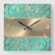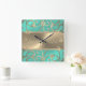 Aqua und Gold Time Flies Clock Designs von Umua. Gedruckt und ausgeliefert von Zazzle oder ihren Partnern.