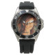 Uhr, Vintage Männeruhr mit schwarzem Lederarmband