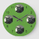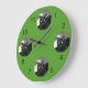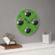 Ihr Haustier steht an den 12, 3, 6 und 9 Stellen dieser Uhr im Rampenlicht. Ihr quadratisches Bild wird an jedem Punkt in einem Kreis platziert. Der Hintergrund kann nach Ihren Vorstellungen angepasst/bearbeitet werden (Standard Grün).