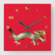Gildendrache in Grüntönen und Golden, sitzt ganz unten auf der Uhr. Zahlenangaben sind goldene Farbwerte in einem metallischen Look. Das ganze Set im roten Hintergrund.