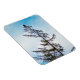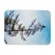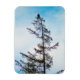 Ein Foto eines American Bald Eagle hoch oben auf einem hohen Pine Tree. Im Hintergrund ist ein blauer Himmel mit scheußlichen Wolken. Auf dem Baum und seinen Ästen finden sich Spuren von Sonnenlicht und Schnee. Bild Copyright 2017 Kimberly J Tilley.
