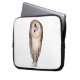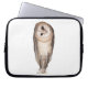 Eine neugierige Scheuneneule, die auf einer Höhle stehend ist und sich den Kopf an einer Seite kauert
