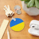 Die Flagge der Ukraine wurde dem Kreisfob dieses Schlüsselanhängers geschickt angepasst. Eine praktische Erinnerung des ukrainischen Erbes.