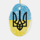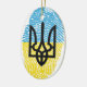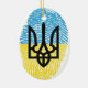 ukrainische Identität. Für alle Ukrainer. Das Symbol von Tryzub über einem Fingerabdruck-Muster der Flagge der Ukraine.