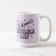 This holiday mug features a cute lavender ukulele . The text Ukulele Day is in gradient lavender text under the ukulele. There are four-pointed lavender stars in the background. The image is a cute comic art style image. The image has a lavender background. Ukulele Day is a holiday celebrated on February 2nd. The mug is a classic mug. This mug is a fifteen ounce mug. The mug is microwave and dishwasher safe.