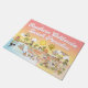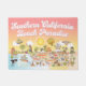 Heller und detaillierter skurriler Cartoon Südkaliforniens - mit Los Angeles, Anaheim, Long Beach, San Diego und anderen großen Städten sowie den meisten Strandstädten - zany Figuren spielen auf dem Strand und Wüste, Berge und Täler. Diese zauberhafte Szene hat alles - ein Surfer hängt zehn, während eine Meerjungfrau auf einem Felsen sitzt, ein Killerwal springt aus dem Wasser, als ein T-Rex eine Herausforderung brüllt, eine Alien über die seltsame Landschaft, ein Guru zeigt seine Blume Power, und ein Stier stürzt in einen Bullenkämpfer..