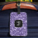 Personalisieren Sie Imitate funkelnd gürtelmädchenhaften Gepäcksack-Tag mit Ihrem Initial und Namen. Schöne mädchenhafte Ultra Violet Lila Imitate Glitzer Glitzern. Foto violetter Glitzern nicht echte Glitzer!