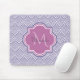 Ein trendiger Mousepad mit lila Deko, der ein Skallop-Muster mit einem orchid-Quarrefolien-Abzeichen kreiert, das Sie ganz einfach mit Ihrem eigenen Monogramm und Namen personalisieren können. Dies ist Teil der Ultra Violet Scallops Spring Orchid Monogram Spring Kollektion.
