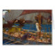 Ulysses und die Sirens des Malers John William Waterhouse aus der Zeit vor der Raphaelite, Öl auf der Leinwand 1891, zeigen die gefährlichen Schönheiten der griechischen Mythologie, deren bezaubernde Lieder die Matrosen zum Schiffbruch und zum Tode verleiten. Der Held Ulysses (Odysseus) aus Homer's epischem Gedicht Die Odyssee ließ seine Männer ihre Ohren mit Bienenwachs stopfen und sich beim Durchqueren des Sirens-Liedes an den Mast seines Schiffes stürzen. Das Wasserhaus zeigt die mythischen Sirenen als riesige schwarze Vögel mit schönen weiblichen Köpfen, die über einem hellen azurblauen Meer schwärmen. Dieses Gemälde spiegelt die Betonung von brillanten Juwelenfarben in mittelalterlichen und frühen Renaissance-Kompositionsstilen vor dem Rampenlicht wider, die hier mit malerischen Einflüssen aus den Schulen der Romantik und des Impressionismus kombiniert werden. John William Waterhouse (1849 - 1917) war ein englischer Maler der Pre-Raphaelite Schule des späten 19. Jahrhunderts. Nach dem Studium an der Britischen Königlichen Kunstakademie malte Waterhouse klassische Szenen aus der antiken griechischen Mythologie, die schrittweise die stilistischen Eigenschaften der Prä-Raphaeliten sowie die malerischen Qualitäten der französischen Impressionisten erlangen. Waterhouse wurde zwar von den berühmteren Mitgliedern der Präraffaelitenbruderschaft überschattet, aber mit großem Erfolg ausgestellt und produziert viele Gemälde mit Themen von weiblichen Figuren aus der Mythologie und den Legenden von König Arthur.