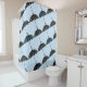 Muster vertikal ausgerichteter grafischer Regenschirme mit Tropfen zur Veranschaulichung des Wassers. Die meisten Regenschirme sind grau, aber innerhalb des Musters gibt es auch 3 blaue Regenschirme, die etwas Farbe verleihen. Diese drei Schirme können vom Design abgenommen werden, wenn Sie Ihren Vorhang ganz grau bevorzugen. Die hellgoldene Hintergrundfarbe kann ausgetauscht werden.