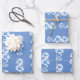 Umhüllungsblätter aus blauem und weißem Seepferd Geschenkpapier Set