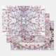 Drei abstrakte Kirschblüten mandala Designs, die elegant und suggestiv sind Buntglas oder persische Teppichmuster.