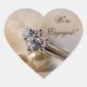 Diese klassischen, individuellen Diamond Ring and Pearls Verlobung Umschlag Aufkleber sind mit einem nahen Foto von runden Diamant Verlobung Ring und weißer Perlenhalskette versehen.