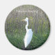 Aimant rond avec une photo d'une grue blanche et temporisation