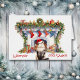 Le devant de cette carte de voeux de Noël a l'image d'un chien malamué de l'Alaska portant un chapeau de Père Noël rouge et blanc. Le chien est assis devant une cheminée décorée, attendant le Père Noël. Le texte rouge en bas dit "En attendant Père Noël". Le texte est personnalisable, comme tout le texte intérieur, de sorte que vous pouvez le faire dire ce que vous voulez. Mignonne ! Voir d'autres images de Malamute et de Husky Dog, ainsi que des dizaines d'autres produits de races de chiens, à Dog Village.