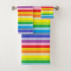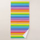 Des bandes de toutes les couleurs d'un arc-en-ciel comprenant le rose, le rouge, l'or, l'orange, l'écru, le jaune, le vert citron, le vert, le bleu pastel, le turquoise, le gris bleu, l'indigo, la lavande et le violet.