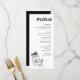Ces élégants menus de dîner noir et blanc incluent l'option de customiser pleinement tous les titres et le texte. Le devant comprend du texte noir avec un graphisme assorti en noir et blanc. Le dos est noir avec vos initiales. Entrez l'outil de conception Zazzle pour des personnalisations de conception supplémentaires.