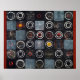 Un tableau abstrait ; une grille de cercles estampillés sur un arrière - plan sombre.