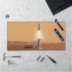 Le concept d'une mission de retour d'échantillons de Mars proposée par cet artiste décrit le lancement d'un véhicule en montée. Les panneaux solaires au premier plan font partie d'un rover. Le rover aurait livré au véhicule de montée une cache d'échantillons de roches martiennes qui auraient été laissés à la surface par un rover de collecte d'échantillons précédent. Le véhicule de levage relâcherait son contenant d'échantillonnage en orbite martienne, qui sera récupéré par un engin spatial pour transporter les échantillons sur Terre.