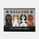 Niedliche Fußmatte, die Illustration des unbekümmerten Königs Charles Spaniels kennzeichnet. Kundengerechte Hintergrundfarbe und -texte. Perfektes Geschenk für den Hundliebhaber oder Kavalier-Königcharles Spaniel-Eigentümer.