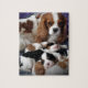 Unbekümmerte Königcharles Spaniel-Mutter mit ihren Babys in diesem eines netten Fotos eines schönen Königs Charles Momma, das ihre Babys pflegt.