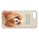 Niedlicher Zellentelefonkasten, der eine Illustration eines unbekümmerten Königcharles Spaniel kennzeichnet. Kundengerechte Hintergrundfarbe und -texte. Perfektes Geschenk für den Hundliebhaber oder Kavalier-Königcharles Spaniel-Eigentümer.