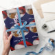 Dieses ist eine Rolle des Blaus, Weihnachtsverpackungspapier, das ein Verzaubern kennzeichnet, die ursprüngliche Fotografie eines blenheim unbekümmerten Königcharles Spanielwelpen und an schläft mit einer Weihnachtsmannmütze.