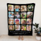 Erstellen Sie für den besten Onkel eine eigene schwarze Sherpa-Decke mit 16 runden quadratischen Rahmen, die Fotos seiner Nichten und Neffen, Familie, Haustiere, Veranstaltungen oder andere besondere Erinnerungen und zwei personalisierte Textzeilen wie "Wir Liebe Sie Onkel" und die Namen seiner Familienmitglieder in eleganter weißer Typografie enthalten.