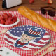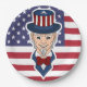Papiertafel mit einer Illustration von Uncle Sam mit der amerikanischen Flagge als Hintergrund, 4. Juli patriotisches Design von Maxi Harmony / Radka Kavalcova