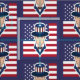 Fabric mit einer Illustration von Uncle Sam mit der amerikanischen Flagge als Hintergrund, 4. Juli patriotisches Design von Maxi Harmony / Radka Kavalcova; blaue Version
