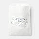 Diese eleganten und eleganten Kostüme zeichnen sich durch ein raffiniertes Design aus. Die Paarnamen sind in einem klassischen Serif-Schriftart und ein wunderschöner Script-Schriftart, der "And" liest und ihre Namen miteinander verbindet. Die blaue Farbpalette kann auf Ihre Hochzeitsfarben oder Veranstaltungsfarben abgestimmt werden. Diese Geschenktaschen sind ideal für eine Hochzeit oder ein Jubiläum.