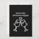 Begleiten Sie uns, während wir die Liebe von [Pärchennamen] mit einem Glas Wein und einem Toast zu ihrem neuen Leben zusammen feiern. Diese elegante Hochzeitseinladung beinhaltet zwei Weingläser, die sich zusammenklammern und ein herzförmiges Design. Es ist der perfekte Weg, Ihre Lieben zu Ihrem besonderen Tag einzuladen.
