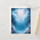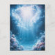 This breathtaking design features a serene and magical underwater sanctuary where the deep blue of the ocean meets a brilliant, heavenly light. Rendered in a lush, textured watercolor style, the scene captures a radiant sunburst breaking through the surface of the water, casting powerful beams of light down into the depths. The seabed is adorned with intricate clusters of pale blue and soft lavender coral formations, appearing like frozen plumes of smoke against the dark turquoise water. Tiny, shimmering white fish dart through the light beams, while sparkling bubbles and distant stars seem to mingle in the water, creating a dreamlike and peaceful atmosphere. The overall aesthetic is tranquil, majestic, and full of natural wonder, making it an exceptional choice for scuba diving enthusiasts and lovers of artistic marine life. This elegant coral reef postcard is a perfect choice for sending a calming "thinking of you" note or a meaningful greeting to a friend who finds peace by the sea. You might choose to use this artistic card for a beach-themed wedding invitation or to celebrate a professional achievement with a touch of deep-sea elegance for your colleagues. It also makes a beautiful decorative piece for a bathroom wall or a stylish addition to a travel journal as a small token of oceanic beauty. This versatile design is also an excellent choice for a housewarming message, a graduation thank you note, or as a heartwarming way to share a message of joy for any situation or event.