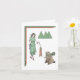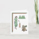 Des bracelets de bulbes de Noël pendent à ses poignets, et derrière elle se trouve un groupe de sapins de Noël stylisés.