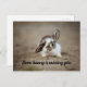 Adorable lapin avec une oreille vers le haut, est présenté sur cette carte postale que vous manquez. Avant de la carte postale dit, "Un lapin vous manque" et au dos de la carte postale dit, "Je vous souhaite un jour très 'houleux'. Restez en contact" ! Une douce carte postale à envoyer à la famille et aux amis, pour leur rappeler de rester en contact !