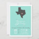 Un aqua chic et une faire-part de mariage blanche, avec une silhouette texane grise avec un coeur. L'arrière de l'invitation a un design simple d'impression d'aqua et de chevrons blancs.